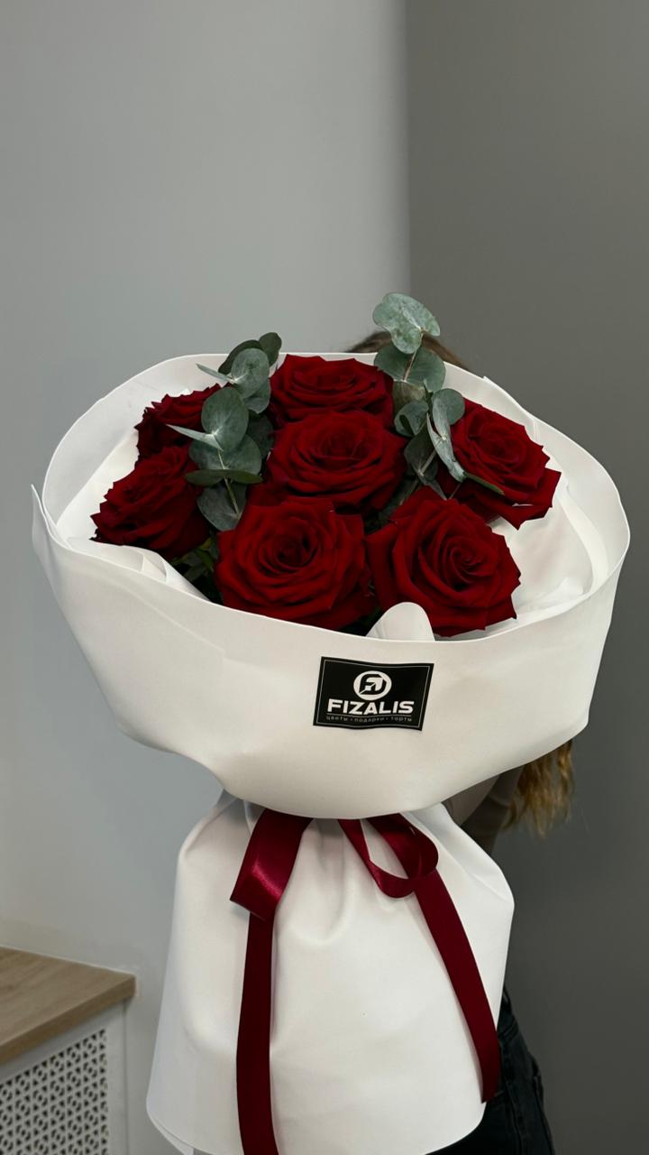 Состав: Роза Эквадор, Эвкалипт, упаковка, лента.