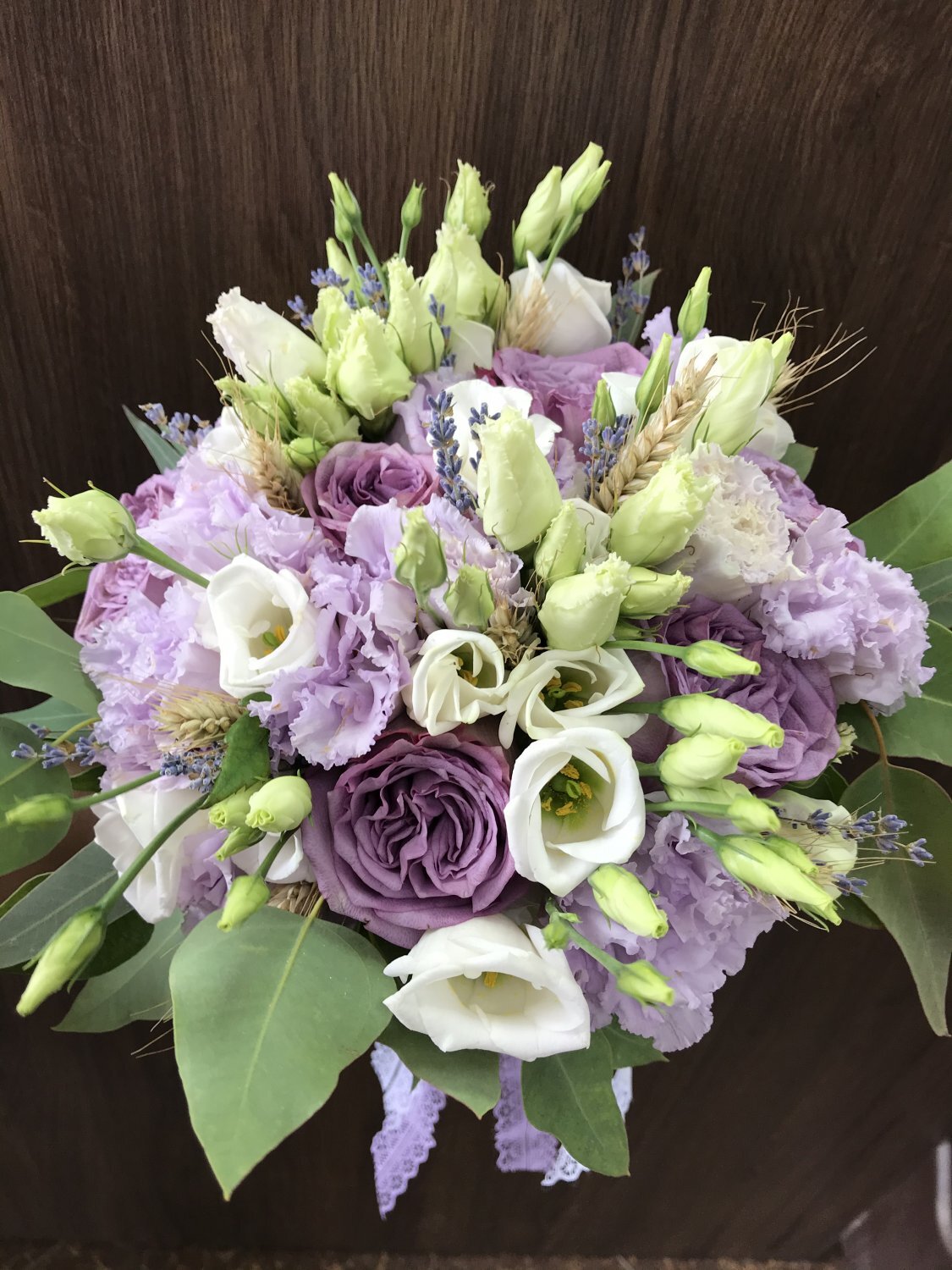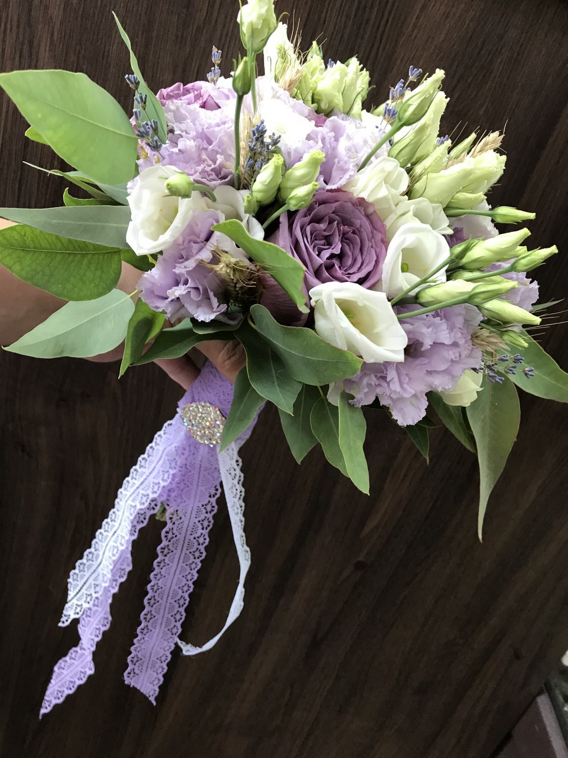 Состав: Роза, Лизиантус, Лаванда, колосок, зелень, лента, декор. Бутоньерка и лепестки в подарок.