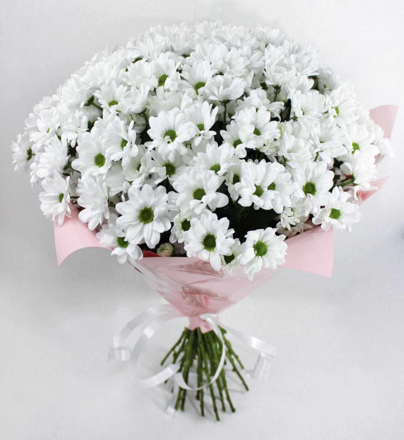 Состав: Букет из ромашковой хризантемы, упаковка.