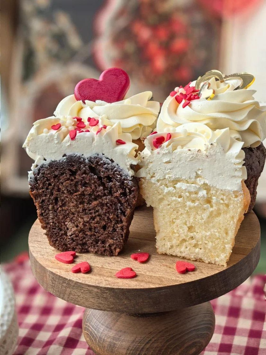 Описание: Ванильные, шоколадные капкейки с начинкой.