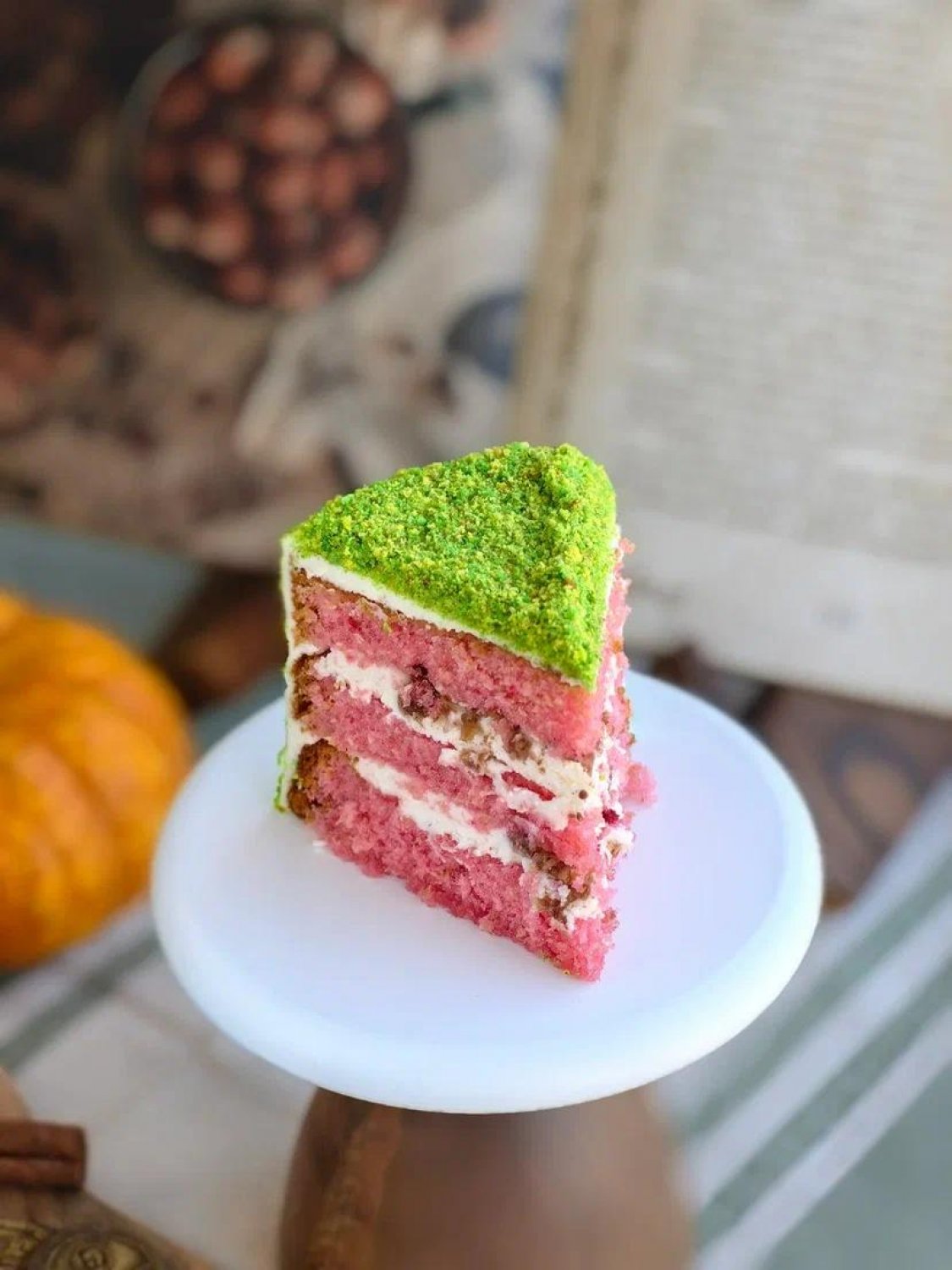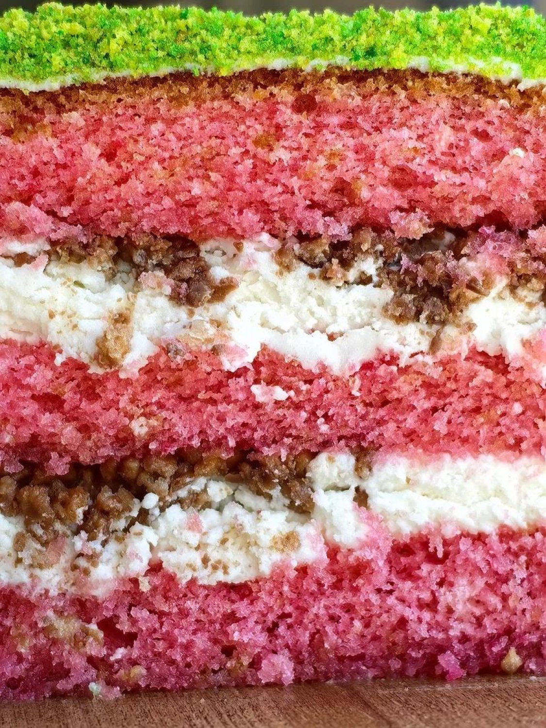 Описание: Бисквит с малиновым пюре, крустилант, крем на основе белого шоколада и творожного сыра.